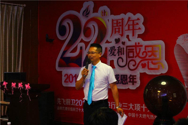 先飛電器燃具有限公司總經(jīng)理黃漢騰為大家分享了《先飛新品及網(wǎng)絡(luò)推廣計(jì)劃》的主題演講:先飛凈水器擁有時(shí)尚的外觀,頂級(jí)的配置,權(quán)威的認(rèn)證;先飛煙機(jī)繼蒸氣清洗、大吸力后,又推出油煙分離和負(fù)離子新品煙機(jī);先飛灶具全面升級(jí),增加聚能鍋架,貼心的防燙手設(shè)計(jì);為擴(kuò)大宣傳,提高知名度,即將增加百度推廣,淘寶和蘇寧旗艦店!