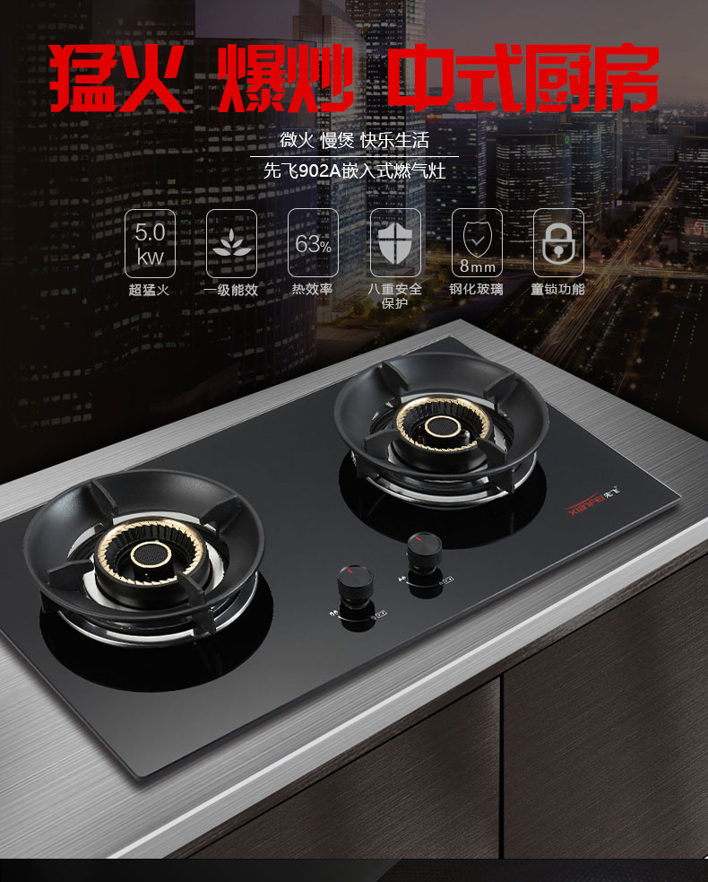 消費(fèi)者說:要一級(jí)能效,要5.0Kw猛火,要聚能盤,要工藝領(lǐng)先,要高大上,要… … 于是先飛灶具902A應(yīng)運(yùn)而生(公司還同時(shí)推出同款單灶556)!先飛902A灶具以產(chǎn)品品質(zhì)優(yōu)越,技術(shù)參數(shù)完美,定價(jià)大眾化的綜合實(shí)力熱火上市,必將成為先飛灶具中的標(biāo)桿與領(lǐng)頭羊!即日起公司已可接受全國客戶訂單,親們還不趕快抓緊下單?