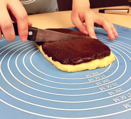 4.取三分之一的面粉加入可可粉,揉成可可面團(tuán);其余揉成原味面團(tuán);(圖4)