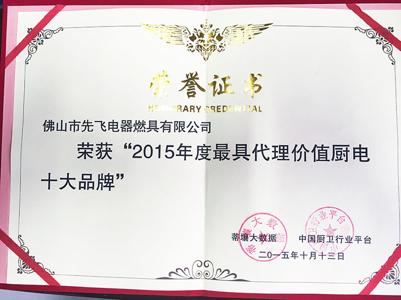 先飛廚衛(wèi)榮獲“2015年度中國(guó)最具代理價(jià)值廚電十大品牌”,要衷心感謝中國(guó)廚衛(wèi)行業(yè)平臺(tái)、蒂壤商業(yè)大數(shù)據(jù)研究室等權(quán)威媒體給予我們這么高的榮譽(yù),更要感謝先飛全國(guó)經(jīng)銷(xiāo)商朋友們?cè)谌珖?guó)各區(qū)域市場(chǎng)全心全力提升先飛品牌,全力以赴銷(xiāo)售先飛產(chǎn)品,將先飛品牌與產(chǎn)品傳送到長(zhǎng)江南北,送進(jìn)了千家萬(wàn)戶!