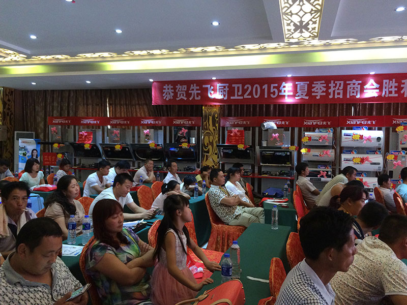 2015年7月20日,南陽先飛招商會議在王府飯店隆重召開,到會客戶多達50多家,為南陽地區(qū)廚衛(wèi)行業(yè)優(yōu)秀零售商的大聚會。先飛公司聶總在會上作了先飛公司介紹、廚衛(wèi)行業(yè)分析與先飛品牌優(yōu)勢推介,獲得客戶們的廣泛認同與掌聲。南陽先飛梁總公布并講解了先飛全方位的招商政策:兩大承諾、三大支持及大力度的訂貨政策,引導客戶們紛紛下單,積極合作。