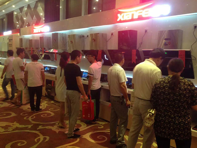 會(huì)場(chǎng)上展示了先飛廚衛(wèi)13組產(chǎn)品,全部采用先飛超越版展柜形象,規(guī)模宏大,氣勢(shì)不凡,客戶現(xiàn)場(chǎng)刷卡踴躍,先飛回款當(dāng)晚很快突破一百萬大關(guān)!