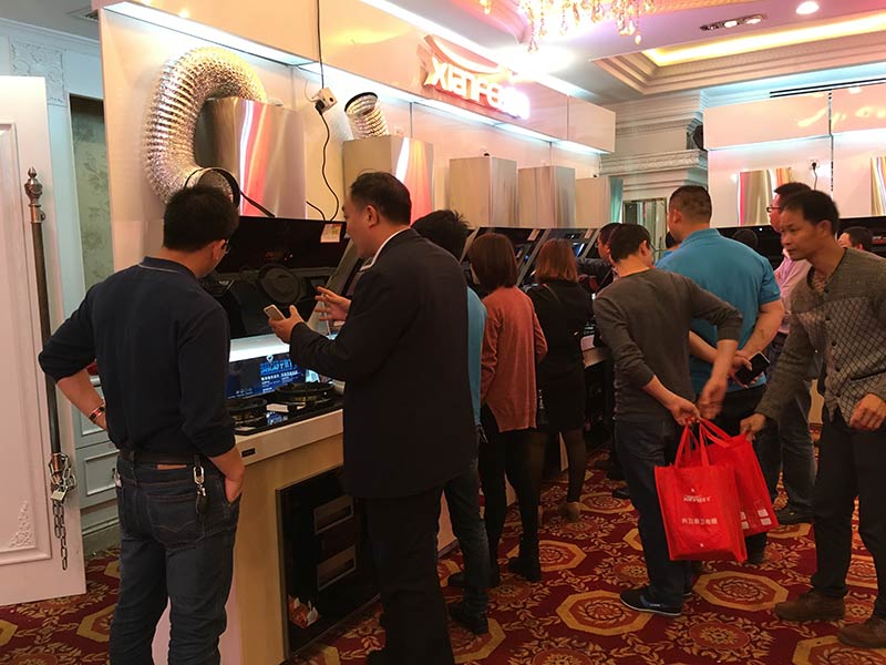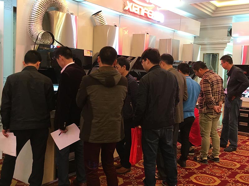 先飛廚衛(wèi)在會(huì)場(chǎng)內(nèi)共計(jì)陳列了25米煙機(jī)、灶具、消毒柜、凈水器、燃熱、電熱等產(chǎn)品,其中煙機(jī)與灶具基本上都是新品占主導(dǎo)地位。向全國(guó)其他兄弟區(qū)域一樣,先飛新品煙機(jī)、新品灶具、新品凈水器再一次上演被層層疊疊圍觀、被你爭(zhēng)我搶下單,氣場(chǎng)強(qiáng)悍,人潮澎湃!