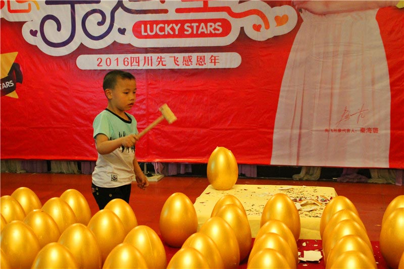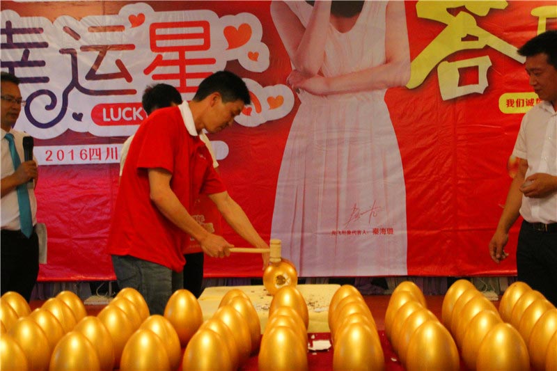 一分耕耘,一分收獲。 只有不斷服務(wù)于人,感恩于人,才會(huì)有更多的收獲!晚宴上,公司對(duì)2015年10位優(yōu)秀銷售人員和10名優(yōu)秀售后人員進(jìn)行表彰!席間,“百分百中獎(jiǎng)”砸金蛋活動(dòng)不時(shí)傳來中大獎(jiǎng)的好消息,嘉賓代表的表演更是將晚會(huì)推向了高潮。一家人齊聚一堂,歡樂不斷!