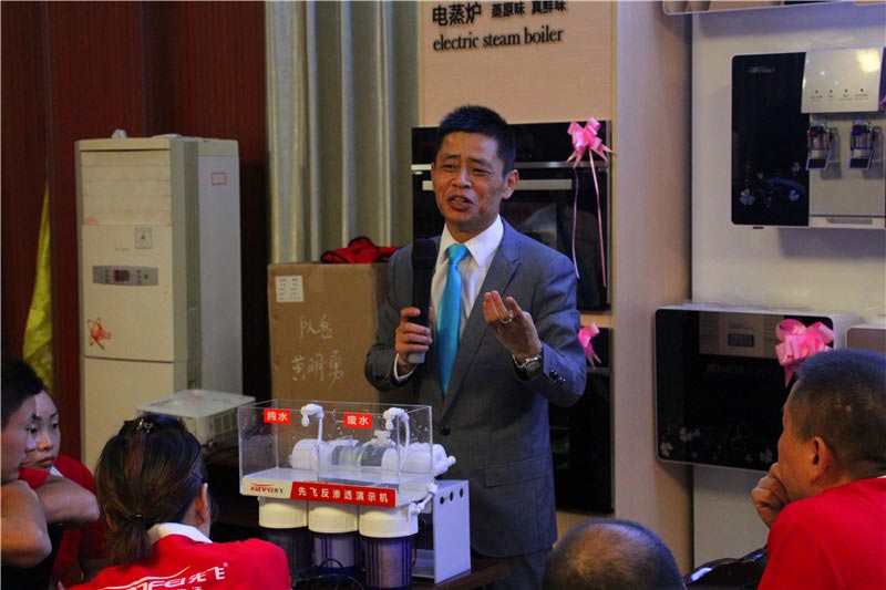 先飛電器燃具有限公司總經(jīng)理黃漢騰為大家分享了《先飛新品及網(wǎng)絡(luò)推廣計(jì)劃》的主題演講:先飛凈水器擁有時(shí)尚的外觀,頂級(jí)的配置,權(quán)威的認(rèn)證;先飛煙機(jī)繼蒸氣清洗、大吸力后,又推出油煙分離和負(fù)離子新品煙機(jī);先飛灶具全面升級(jí),增加聚能鍋架,貼心的防燙手設(shè)計(jì);為擴(kuò)大宣傳,提高知名度,即將增加百度推廣,淘寶和蘇寧旗艦店!
