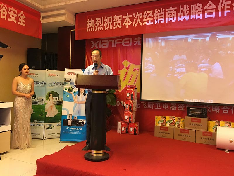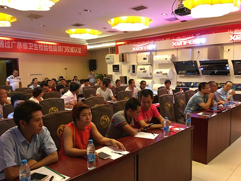 會議現(xiàn)場,首先先飛西北區(qū)域總監(jiān)孟總對參會客戶表示由衷的歡迎!其次,先飛電器全國營銷總監(jiān)聶總,對于廚衛(wèi)行業(yè)、先飛品牌、未來先飛做了深入淺出的講解,不間斷的掌聲也足以證明客戶的共鳴與認(rèn)同!先飛華北區(qū)域總監(jiān)趙總,通過對產(chǎn)品全面細(xì)致的講解,使參會客戶更加堅(jiān)定與先飛合作的信心!
