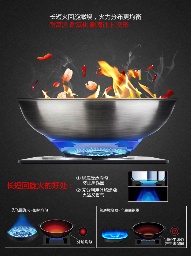 編者按:先飛灶具“猛火高效聚能盤”設(shè)計,不僅可有效提升能效等級,有效防風(fēng)與節(jié)能環(huán)保,而且使得面板溫度從200℃以上,直接降至40℃左右,面板與旋鈕再已不燙手了,陶瓷面板與玻璃面板爆板概率也從千分率直接下降到萬分率。