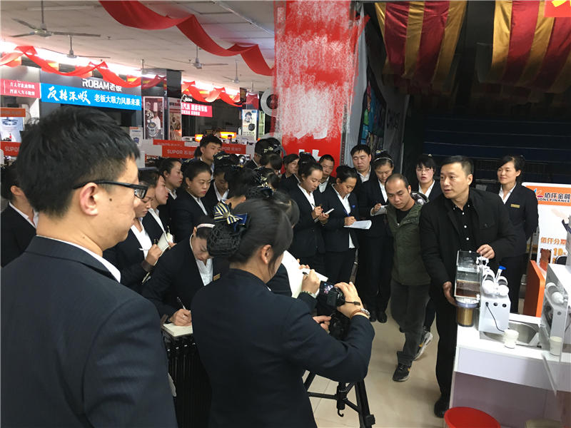 10月13日,先飛公司聶總、先飛凈水器甘工程師、先飛東北大區(qū)王經(jīng)理等先飛凈水器專業(yè)培訓小組,在華生總部面對華生各門店200多名小家電部門員工,開展了先飛凈水器視頻培訓會議。并建立了兩百多人的微信大群,及時發(fā)布產(chǎn)品信息,及時互動溝通,使大家對先飛凈水器產(chǎn)品熱情高漲!