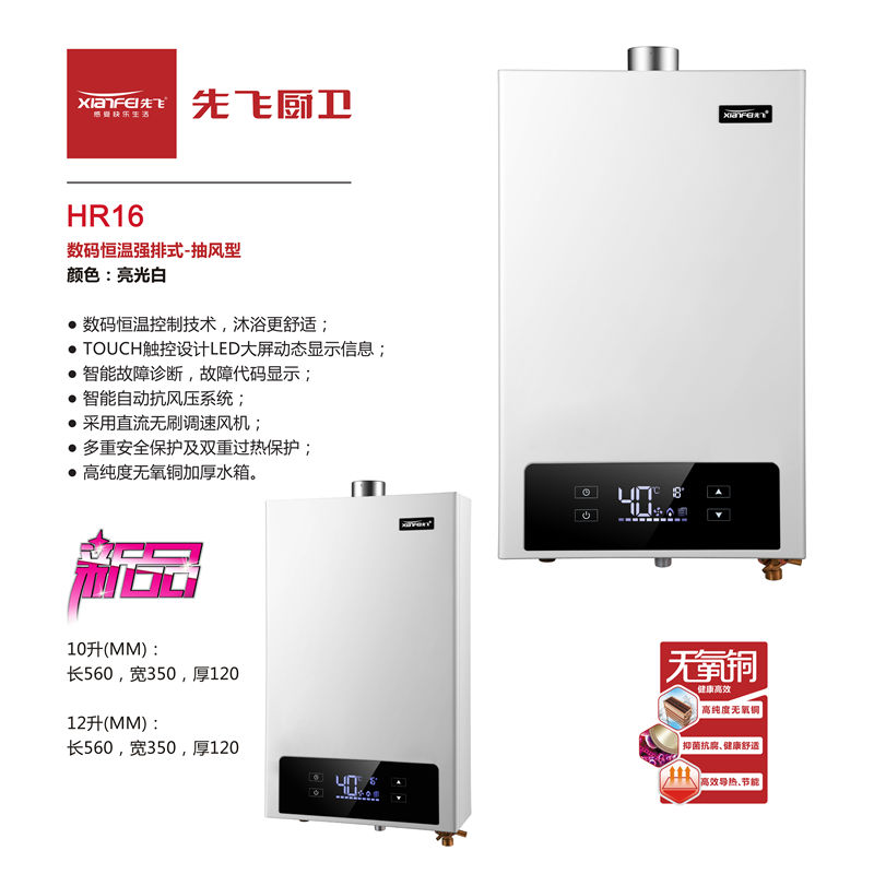 先飛數(shù)碼恒溫燃氣熱水器之“智能自動抗風壓系統(tǒng)”,主要是采用了智能優(yōu)質(zhì)直流無刷調(diào)速風機,在燃氣熱水器使用過程中,可全程智能監(jiān)測外部風力與本機工作狀況,自動調(diào)節(jié)風機轉(zhuǎn)速對抗外部風壓,確保燃氣熱水器內(nèi)部高效穩(wěn)定燃燒,并且熱效率提高了5-8%,徹底解決了因安裝位置造成排煙道過長,或裝排煙管地方風力過大(抗吹風能力8級)等外因?qū)е掠脩趔w驗下降等問題。