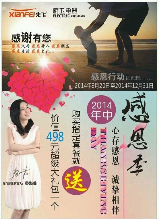 先飛,讓生活快樂起來!快樂先飛,快樂廚房。對(duì)于消費(fèi)者來說,買到性價(jià)比高,品質(zhì)過硬的商品就是快樂。在“感恩季”活動(dòng)期間,只要四川消費(fèi)者同時(shí)購買指定款式的熱銷煙機(jī)、熱銷灶具、冷凝式熱水器10QY3三件套產(chǎn)品,就將獲得先飛四川經(jīng)銷商免費(fèi)送出的超級(jí)大禮包。據(jù)了解,活動(dòng)主辦方為此準(zhǔn)備了超過5000份,總價(jià)在250萬左右的超級(jí)大禮包。